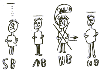 Als eine Mutter das erste Mal mit ihrem Sohn (11 J) über die Hochbegabungsproblematik sprach, hat sie ihm eine Strichmännchenzeichnung gezeigt, die erklärt, wie Hochbegabte in der Schule demotiviert werden, weil die Ziele zu niedrig angesetzt sind. Während sie erklärte, malte der Sohn konstant. Dann sagte er zu ihr: “Mama, dein Bild gefällt mir nicht, nimm dieses.” Sie schaute sich die Zeichnung an. Er erklärte die Zeichnung folgendermaßen: “Beim schwachbegabten Kind (SB) habe ich nur zwei Tränen gemalt. Es ist sicher auch traurig, aber ihm wird ja geholfen. Es gibt Förderstunden, der Lehrer baut Zwischenschritte ein und dann gibt es Sonderschulen. Beim hochbegabten Kind (HB) habe ich vier Tränen gemalt. Für diese Kinder passiert ja überhaupt nichts. Eigentlich ist die Spruchblase auch nicht ganz richtig. Die Kinder rufen ja nicht um Hilfe. Es ist nur in ihnen drin. Aber es hört ja niemand.”